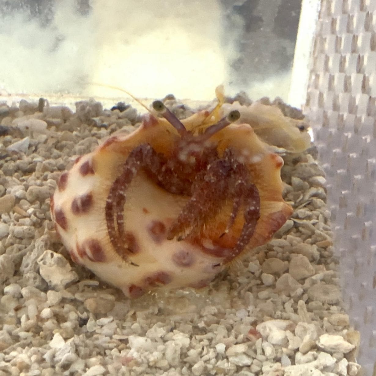 リュウテンサザエに入っている赤っぽいナキオカヤドカリさん【写真の子】