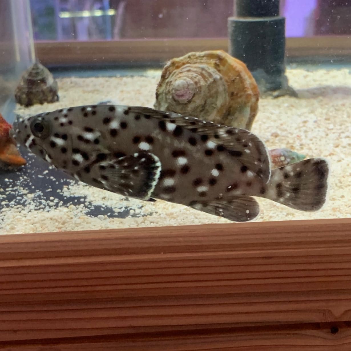 ヤコウガイグリーンにはいっている脚濃いめムラサキオカヤドカリ【LLサイズ6.4cm】