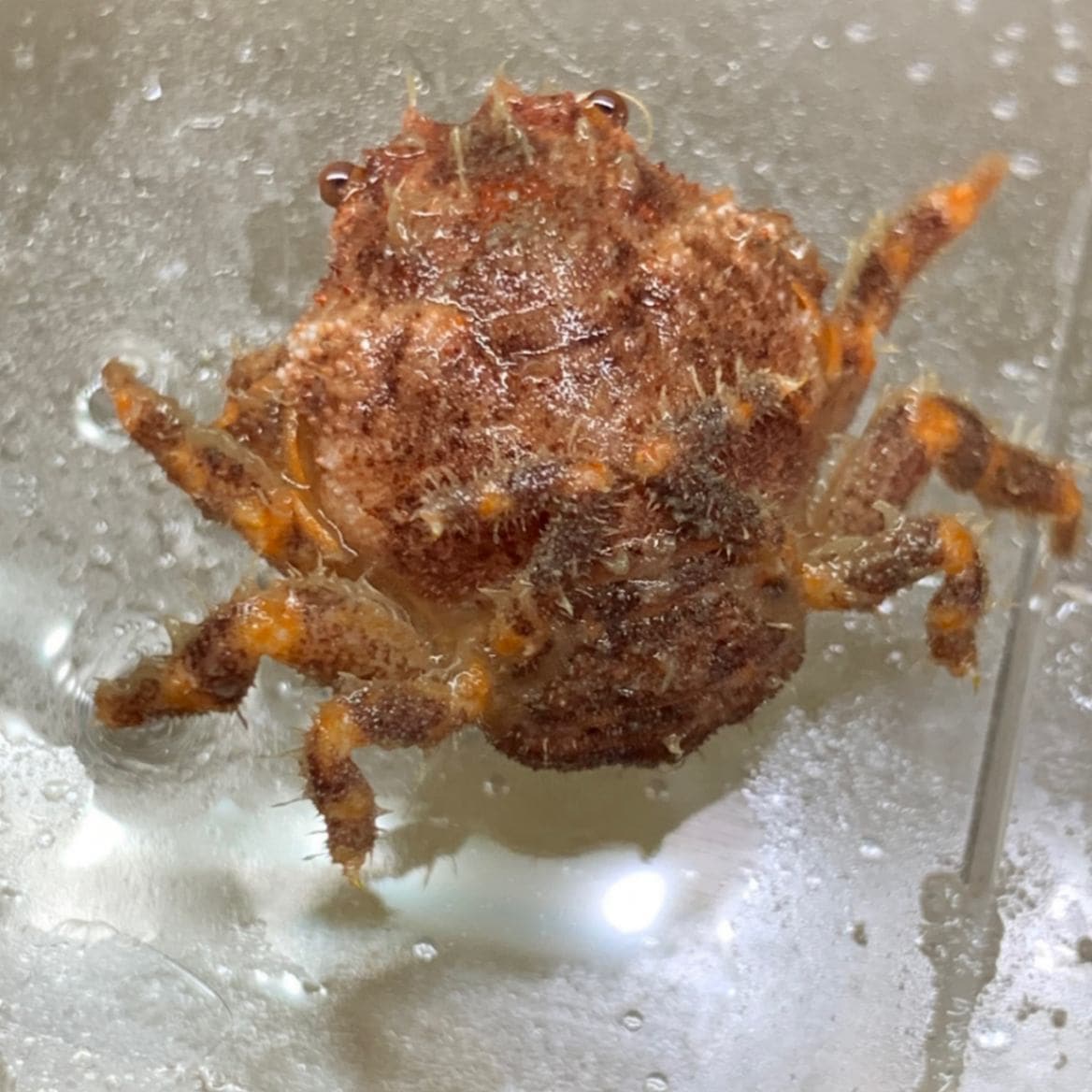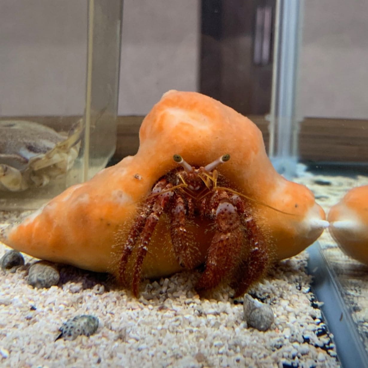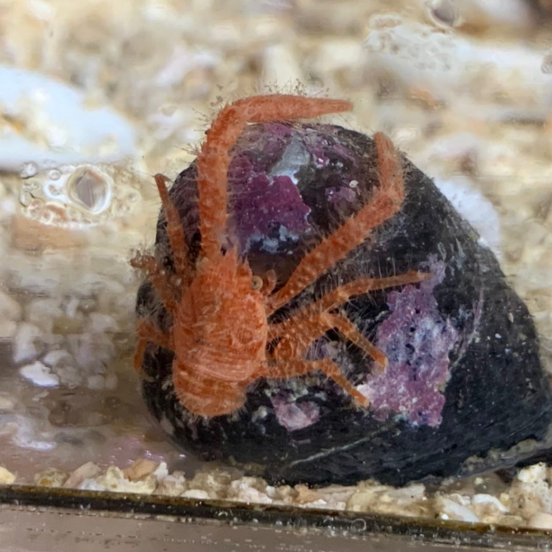 リュウテンサザエに入っている赤っぽいナキオカヤドカリさん【写真の子】