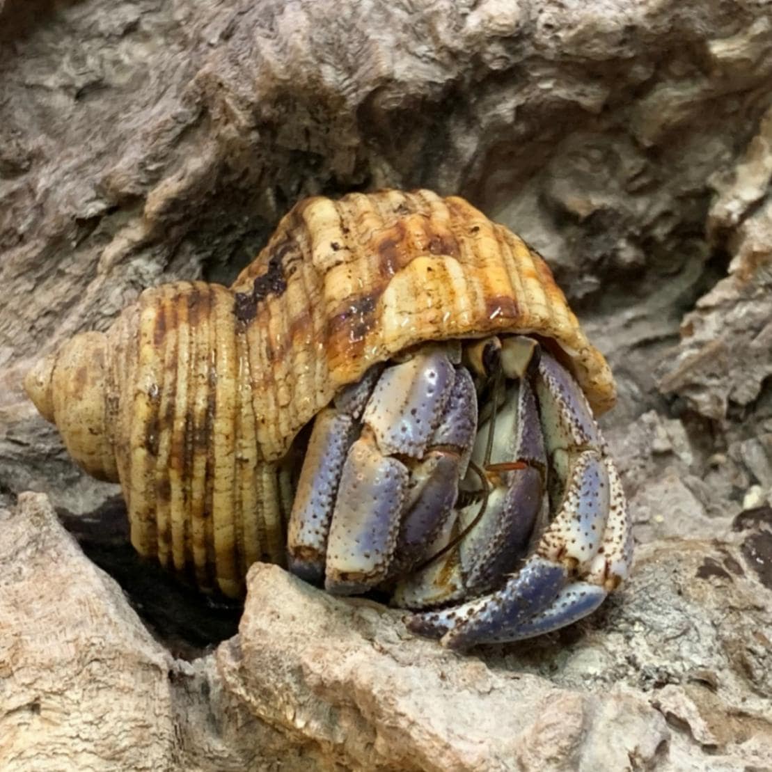 アフリカマイマイに入っているムラサキオカヤドカリさん【8.5cm】【写真の子】