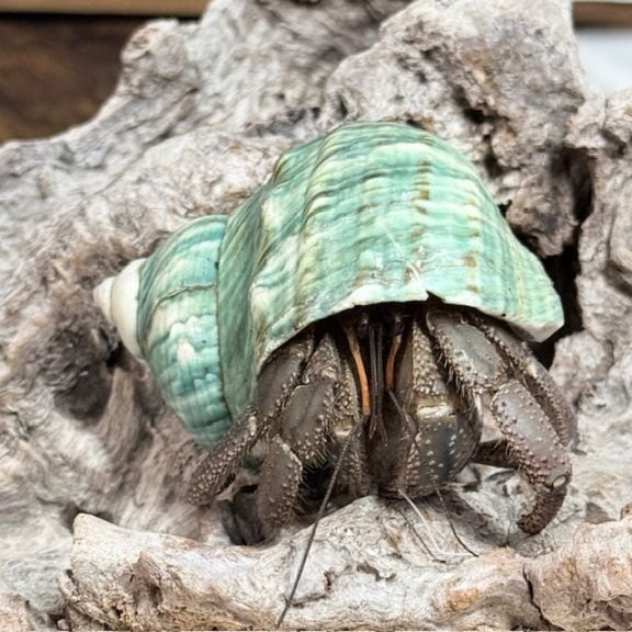 ヤコウガイグリーンにはいっているオカヤドカリさん【8.5cm】【写真の子】貝殻割れあり!