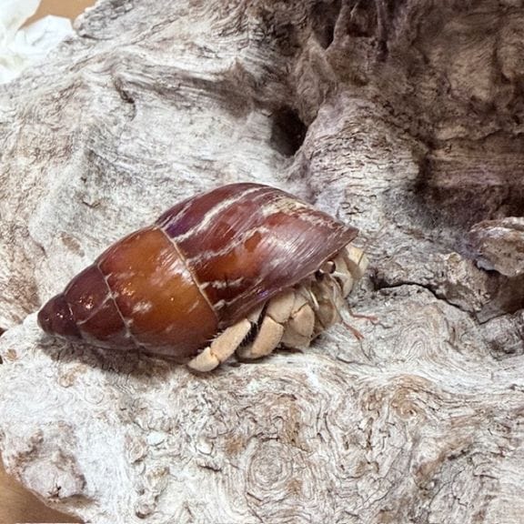 シロスジタケノコマイマイはいっている白っぽいムラサキオカヤドカリさん【5cm】【写真の子】