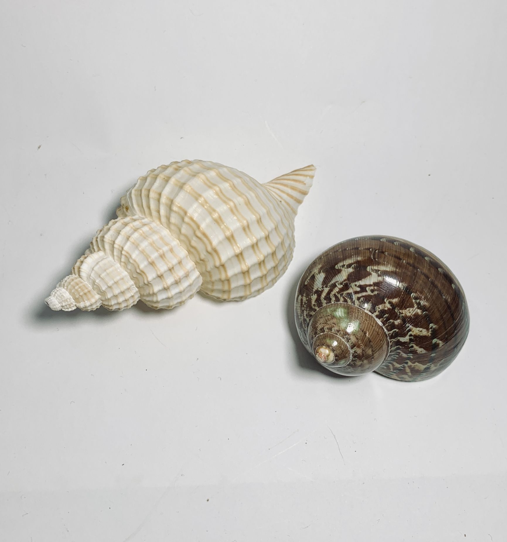 右:シロツブガイ/貝殻幅:約9.8cm 殻口:約3.5cm
